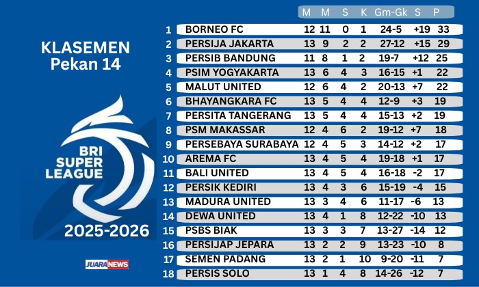 Baca Juga: Jadwal dan Hasil Pertandingan Super League 2025-2026