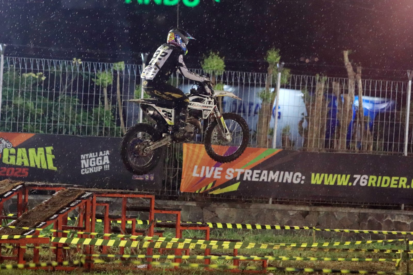 Digelar di Tritan Point, Bandung, pada Jumat (10/10/2025), lebih dari 40 rider terbaik Indonesia harus berjibaku menaklukkan lintasan tanah berbatu yang semakin licin akibat hujan deras.